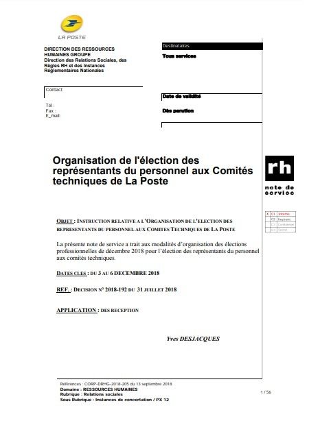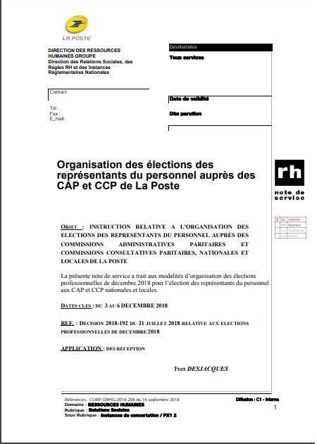 CORP-DRHG-2018-206 – Organisation des élections des représentants du personnel auprès des CAP et CCP de La Poste