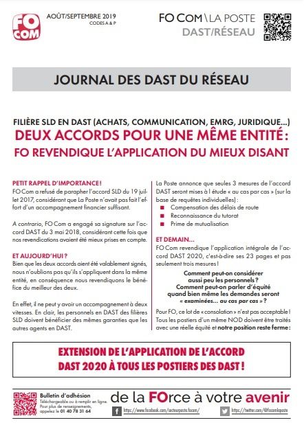 FO conseille à tous les postiers d’alerter les militants et les représentants locaux de tous problèmes rencontrés concernant la santé et la sécurité au travail et de les noter sur le cahier d’Hygiène et de Sécurité mis à disposition dans tous les établissements. Militants et représentants du personnel vous accompagneront pour améliorer vos conditions en adéquation avec la réalité du terrain.