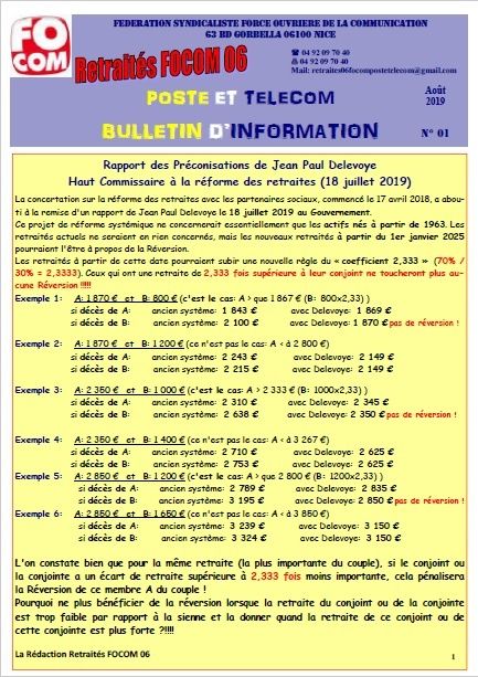 Vous trouverez en PJ l'intégralité du rapport DELEVOYE sur les retraites.