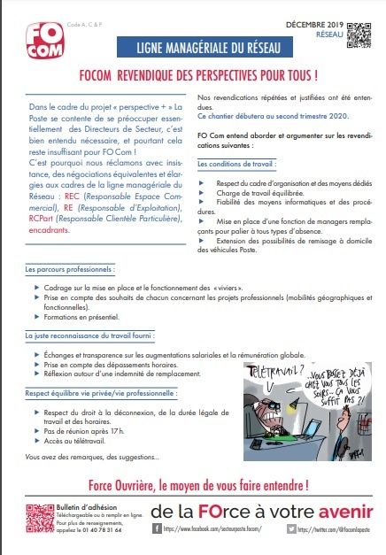 Dans le cadre du projet « perspective + » La Poste se contente de se préoccuper essentiellement des Directeurs de Secteur, c’est bien entendu nécessaire, et pourtant cela reste insuffisant pour FO Com !